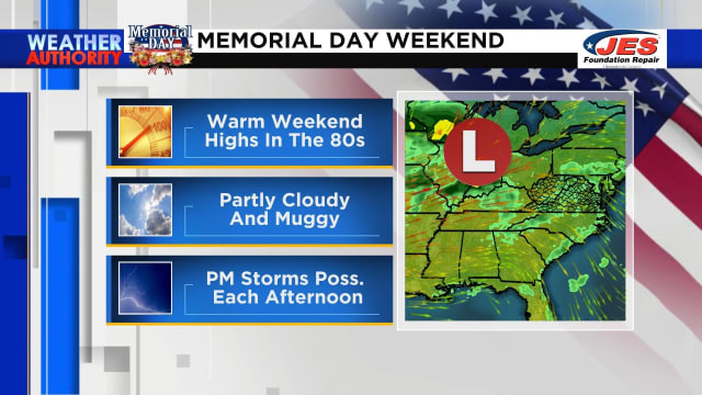 Read full article: With shower and storm chances increasing today, could we see a risk for more flooding?ROANOKE, Va. โ River levels continue to come down across southwest and central Virginia, with Southside continuing to be the place to watch for flooding. The Roanoke River at Altavista, Brookneal and Randolph is at minor flood stage this morning, but the levels are falling at all gauges. Today's rain chances (WSLS)It wouldnโt be out of the question to see some flash flooding concerns develop today, as the Weather Prediction Center has posted a marginal risk along and west of the Blue Ridge. Future Tracker Sunday 5 p.m. (WSLS)Shower chances drop off tonight and they should stay pretty low through the holiday on Monday. Memorial Day planner (WSLS)Our skies stay pretty quiet through Tuesday and Wednesday, but look for storm chances to increase again by Thursday, Friday and next weekend.