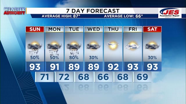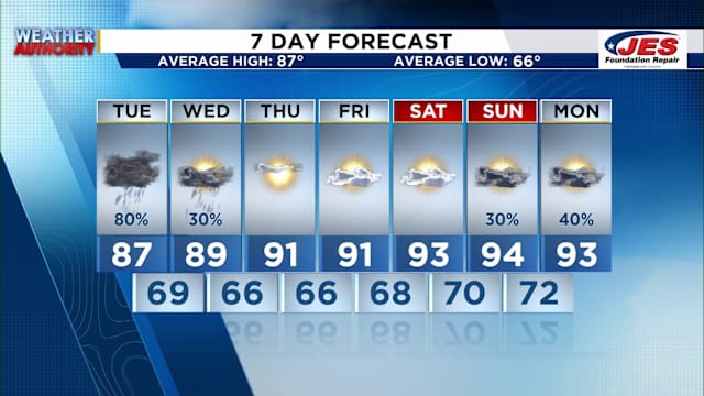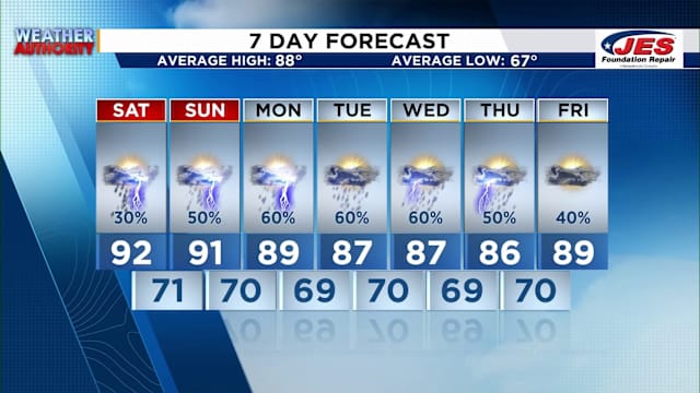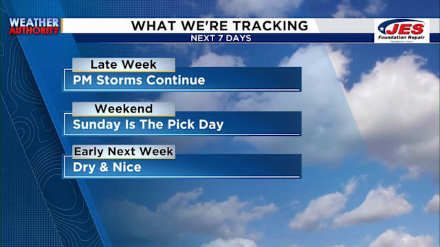 Read full article: The trend of hot temperatures and afternoon storms continues SaturdayToday will be fairly nice for most of us. Partly cloudy skies will build in through the day, and the chance to see a stray shower exists. Stay safe out there and enjoy the holiday if you can.