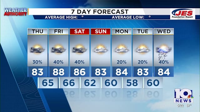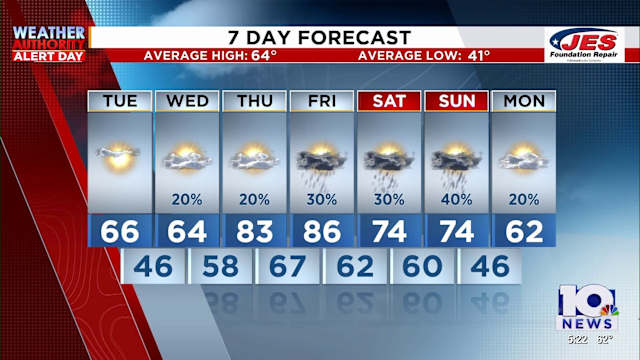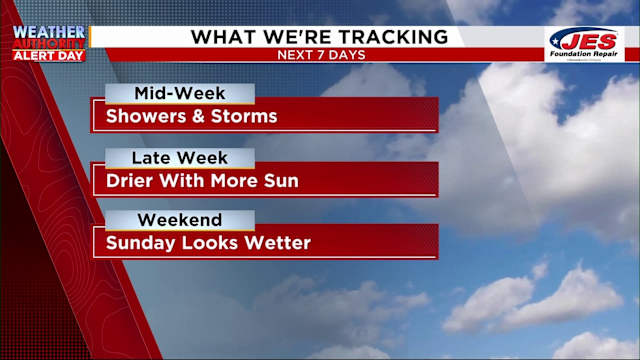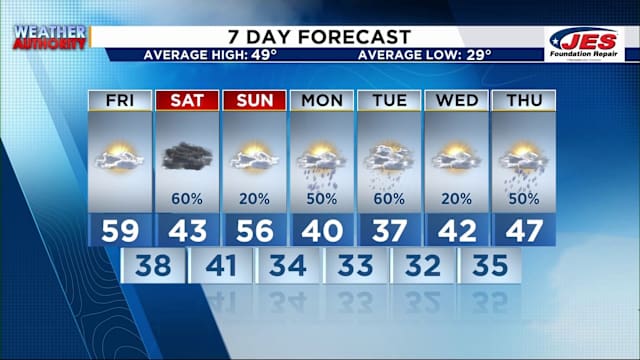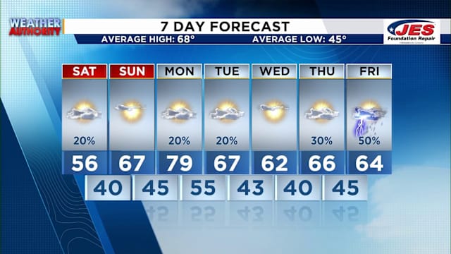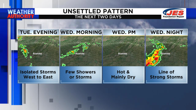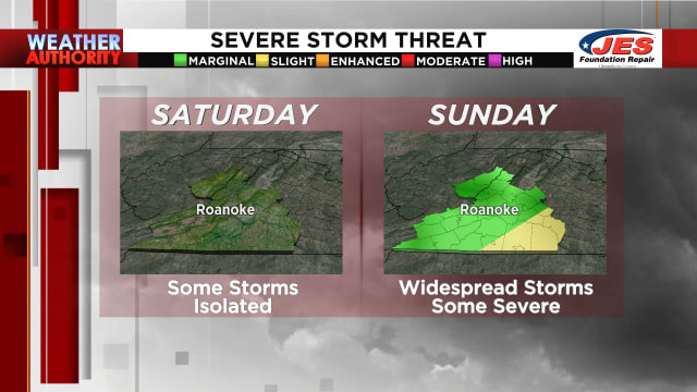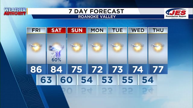 Read full article: Unsettled weather aheadShowers and thunderstorms are expected to increase across Southwest and Central Virginia beginning Friday, with warmer-than-average temperatures and a marginal risk for severe weather through the weekend, according to 10 News's meteorologist Jeff Haniewich.
