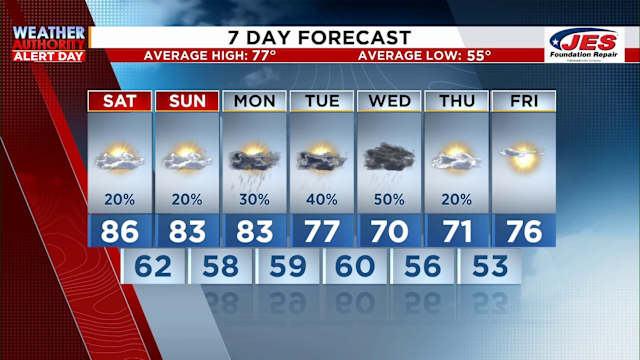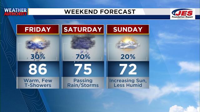 Read full article: Rain chances remain, but arenโt quite as highScattered storms, flash flood risk, and hot, humid weather are expected across Southwest and Central Virginia. See what the Weather Authority forecasts for your weekend and upcoming week.